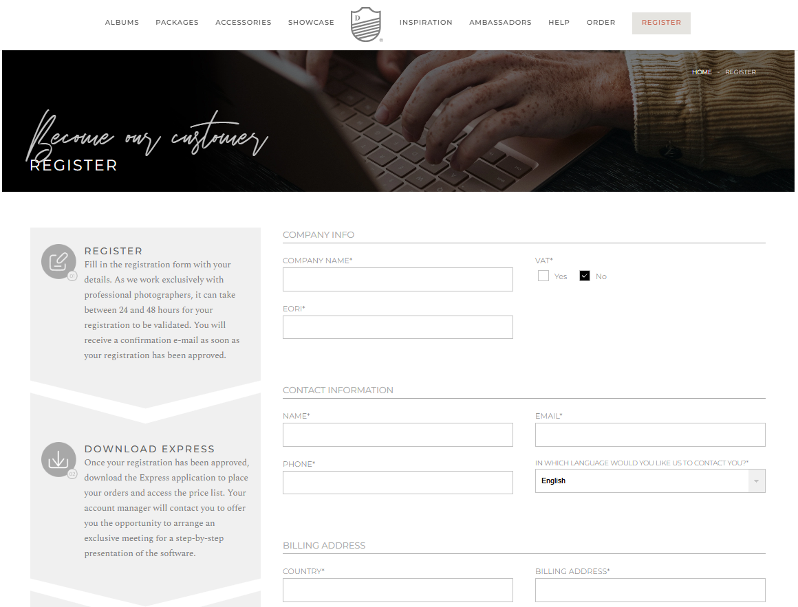 Before placing your first order, make sure you've created your professional account on our website (https://uk.dreambookspro.com/). Fill in all the information accurately, especially your billing details and delivery address, to avoid delays or errors in shipping.